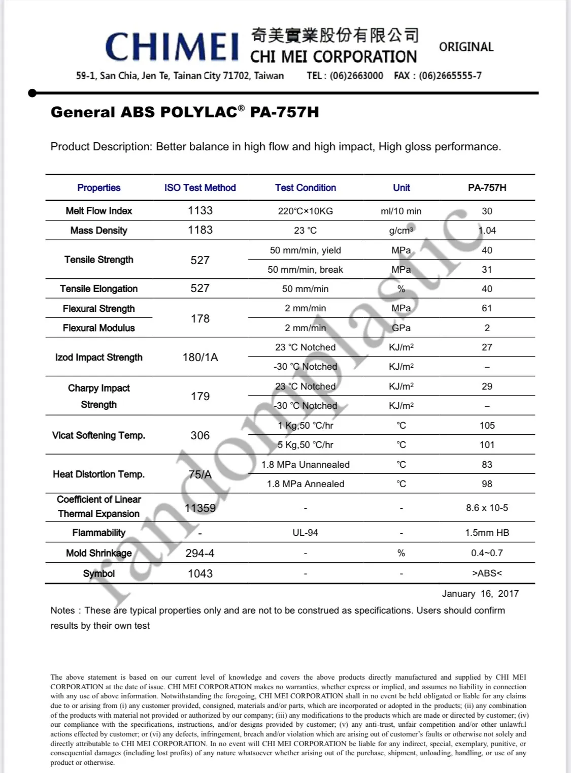 Hạt nhựa nguyên sinh ABS PA 757H