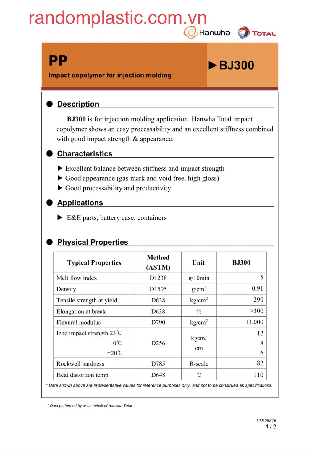 Đặc tính nổi bật của Hạt nhựa PP BJ300
