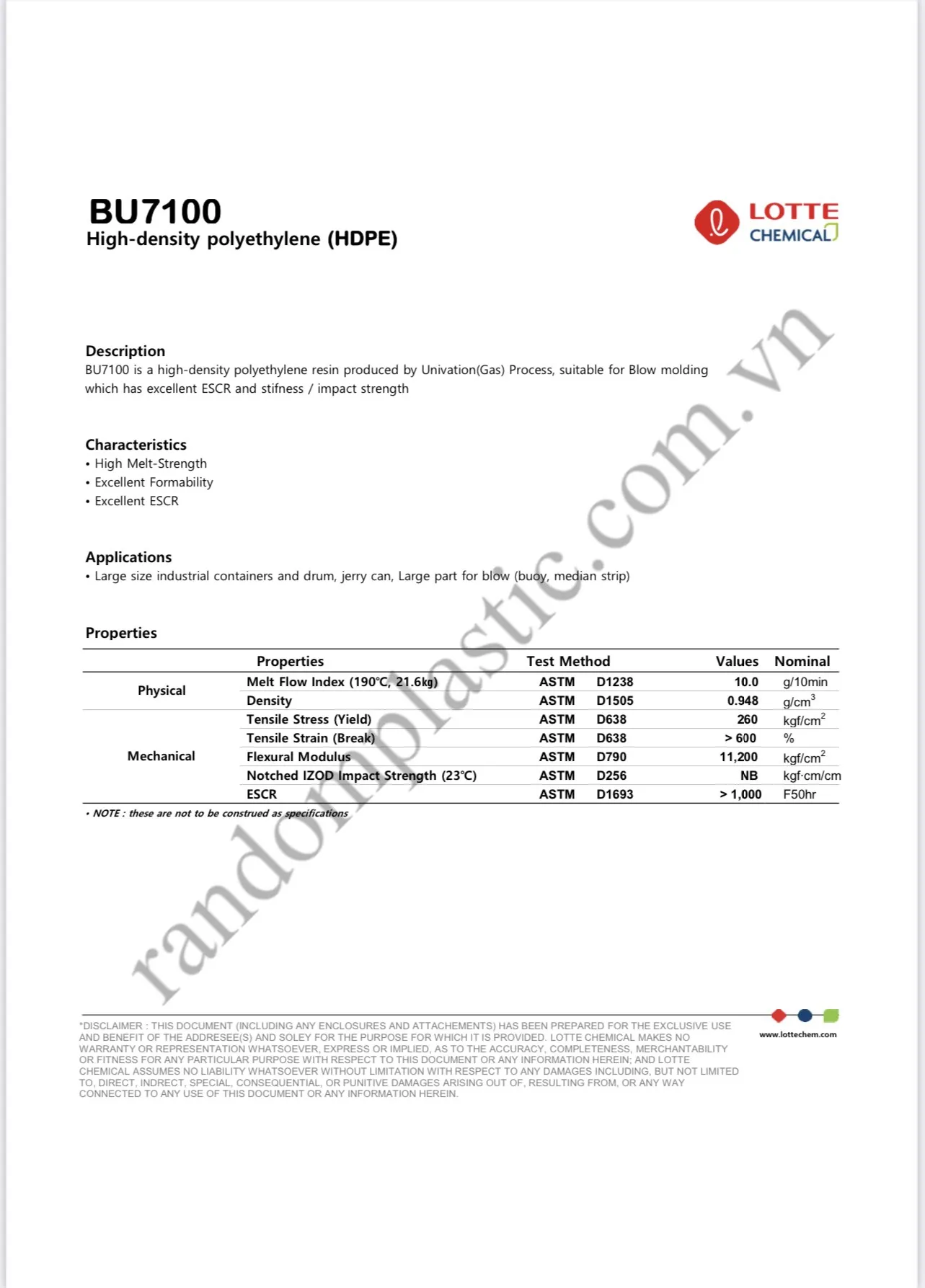 Ứng dụng: HDPE BU7100 LOTTE