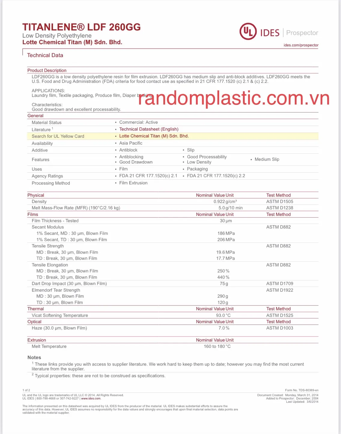 LDPE 260GG: Nhựa polyethylene mật độ thấp polyethylene (LDPE) là một vật liệu nhựa phù hợp cho các quá trình đúc khuôn chế biến khuôn nhựa nhiệt dẻo và có khả năng tạo khuôn tốt. LDPE chủ yếu được sử dụng cho các sản phẩm phim, cũng được sử dụng trong các sản phẩm ép phun, thiết bị y tế, dược phẩm và vật liệu đóng gói thực phẩm, thổi khuôn đúc sản phẩm rỗng.