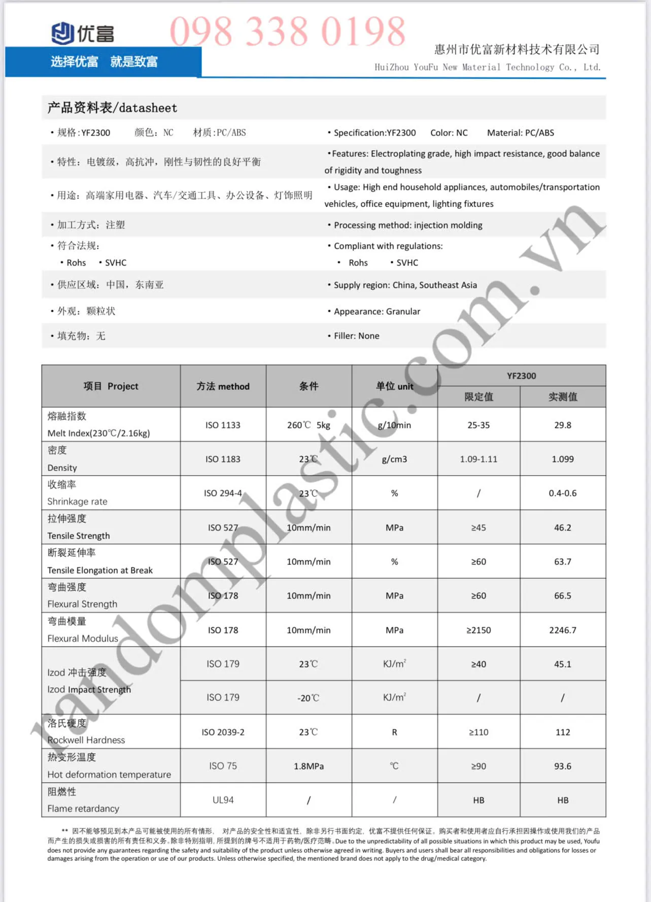 - HẠT NHỰA NGUYÊN SINH PCABS YF2300