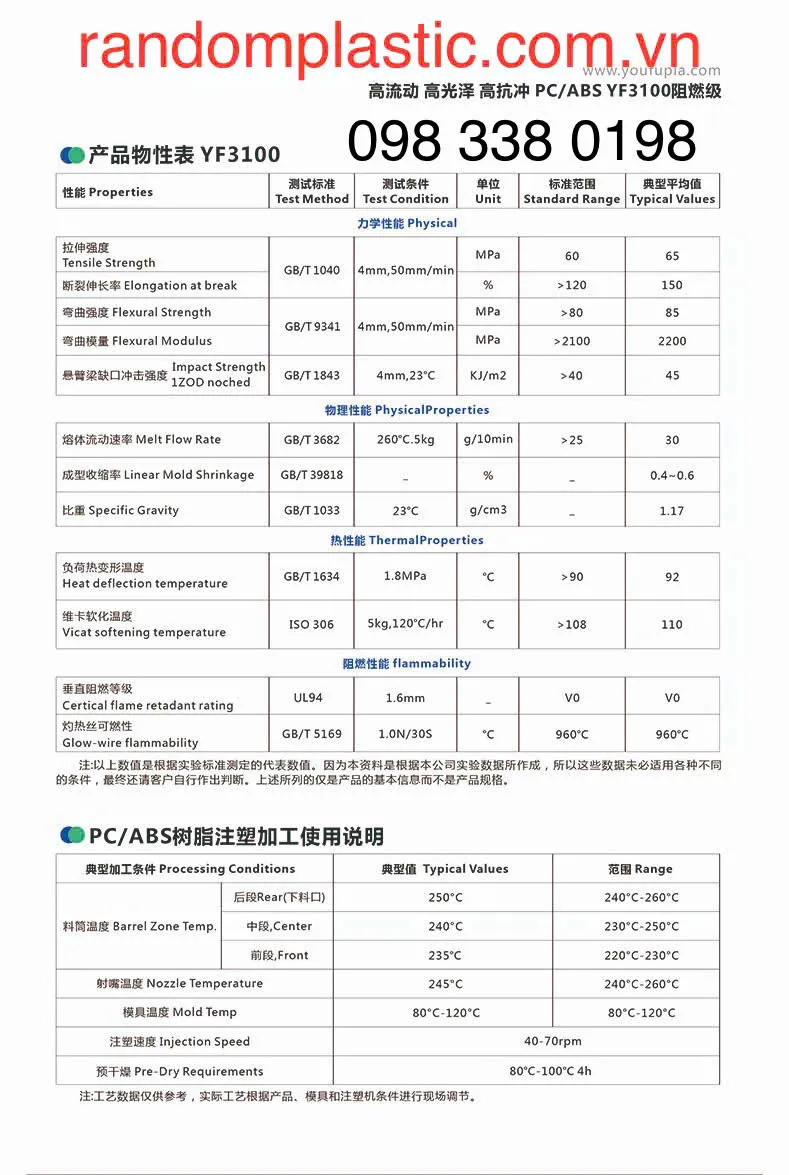 Hạt nhựa nguyên sinh PCABS YF3100