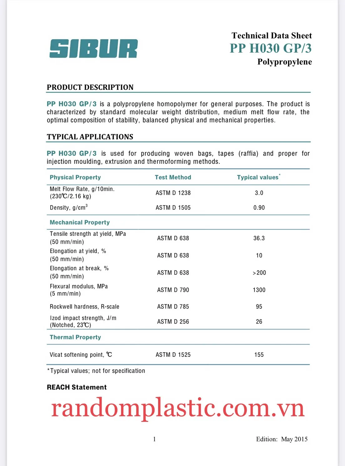 Hạt nhựa nguyên sinh PP H030 GP