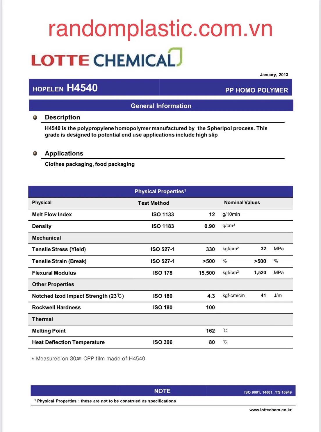 H4540 dùng sản xuất túi đựng quần áo, bao gói thực phẩm, làm bao bì một lớp chứa đựng bảo quản thực phẩm, không yêu cầu chống oxy hóa một cách nghiêm nhặt.