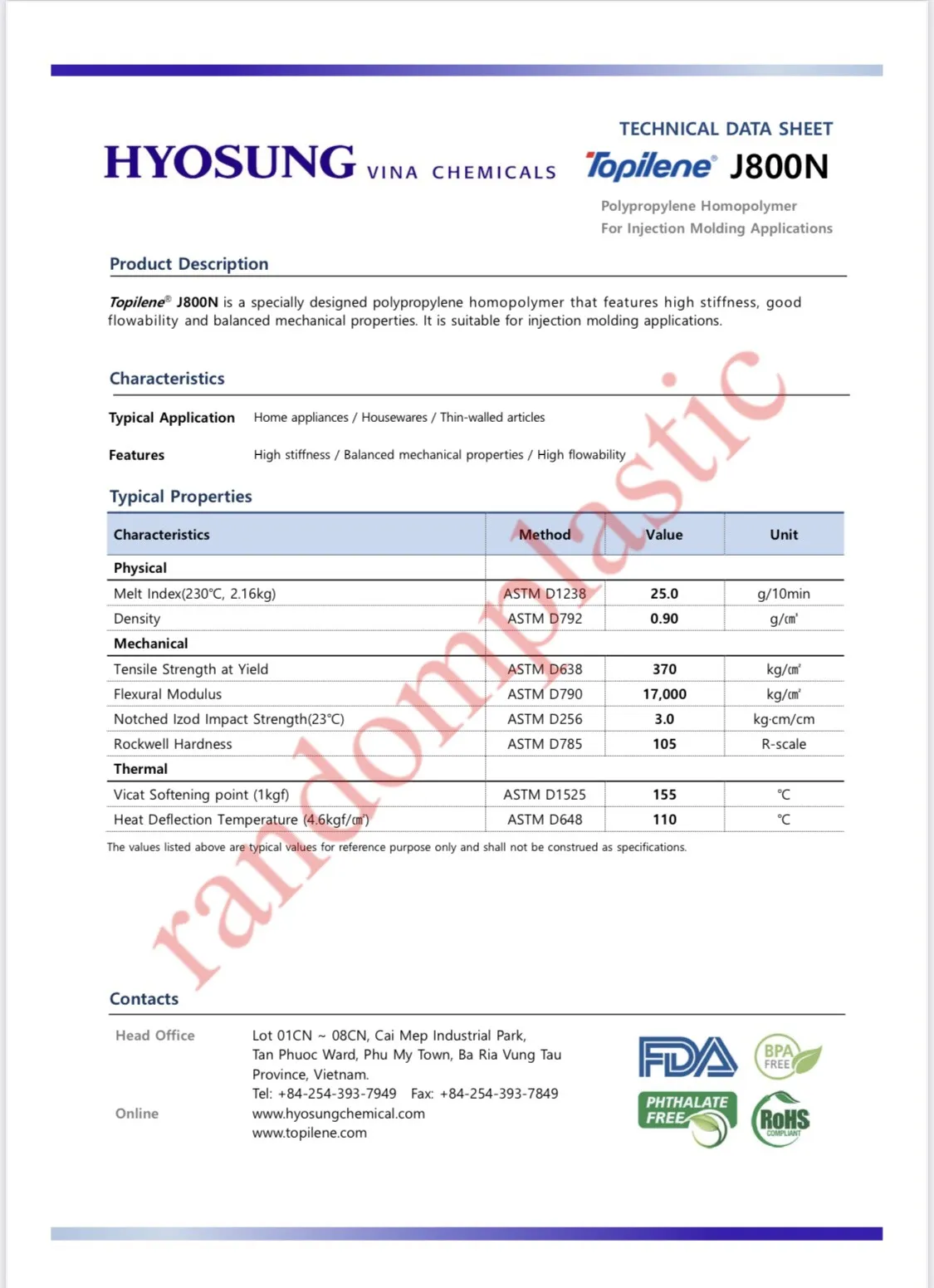 Tham khảo bài giới thiệu về hạt nhựa nguyên sinh pp J800N tại đây