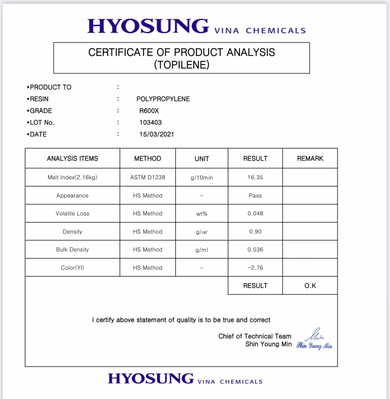 3. Đặc tính của Hạt nhựa nguyên sinh PP R600X