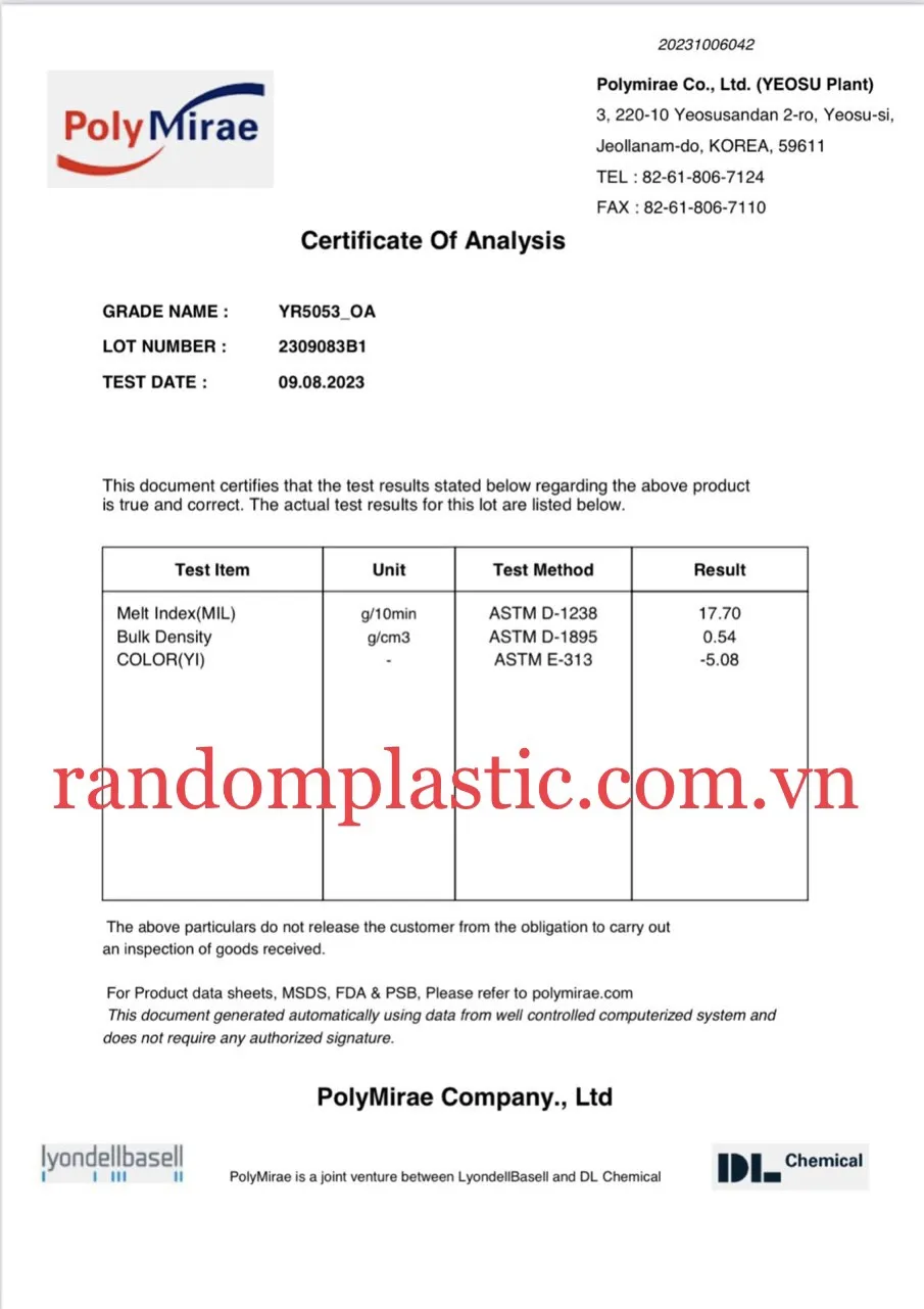 Hạt nhựa nguyên sinh PP YR5053
