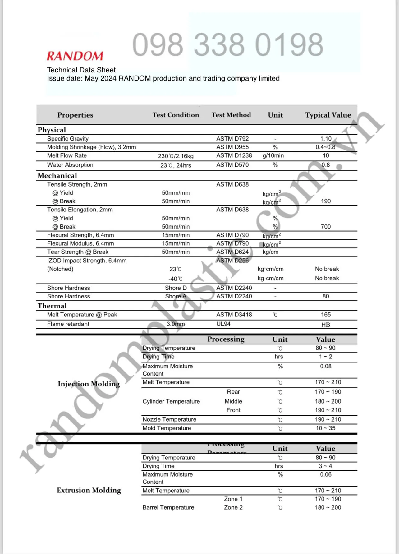 – Tỷ trọng thấp (0.88-1.00) giúp tạo ra sản phẩm nhẹ hơn, tiết kiệm chi phí nguyên liệu